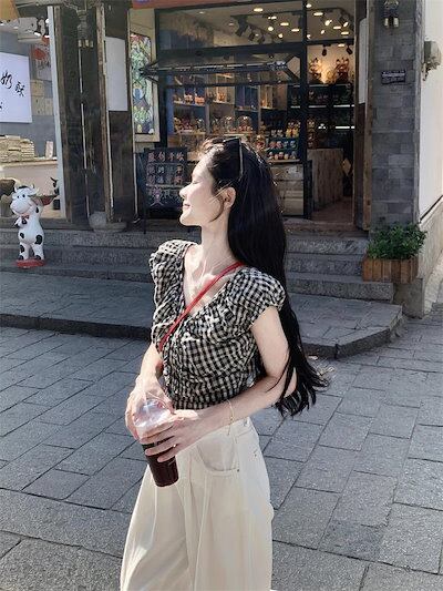 2024 春夏トップス 半袖 Tシャツ 韓国 レイヤード風 着痩せスリムかわいいネックフレンチセクシーラウンドネックおしゃれスリーブカジュアルコーデショート丈ファッション系レディースお出かけ T