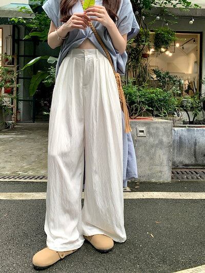 2024 春夏パンツ ロング丈 ワイド ストレート ハイウエスト 美脚効果 脚長効果 細見え 夏 白 黒 紫 おしゃれ かわいい 韓国ファッション レディース お出かけ