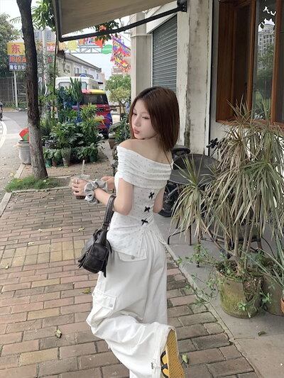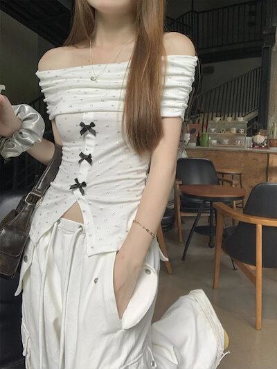 2024春夏 2way トップス tシャツ スタンドカラー ゆったり かわいい おしゃれ 大人っぽい フレンチ きれいめ カジュアル 韓国ファッション系 レディース お出かけ