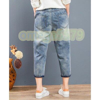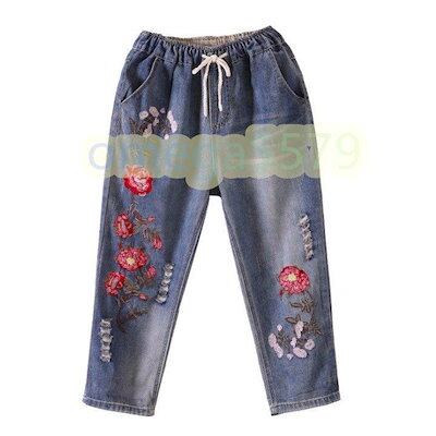 デニムクロップドパンツ花柄刺繍レディースデニムパンツ ジーパン春七分丈ジーンズ夏ダメージパンツ民族風ボトムス ズボン8分丈パンツ ジーンズ