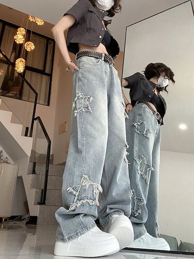 ワイドパンツ 2024 春夏 新作 レトロ ジーンズ INS 着痩せ 百掛け 刺繍 ストレート ワイドパンツ