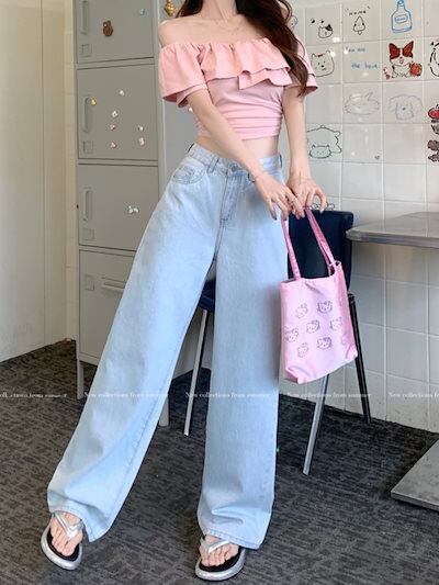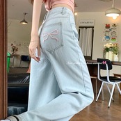 蝶結び刺繍 デニムパンツ ジーンズ 長ズボン gパン レディース 春 夏 秋 かわいい ストレート カジュアルパンツ ファッション ロングパンツ