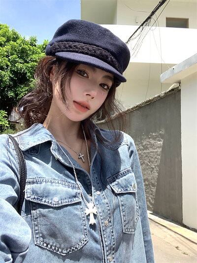 2024秋冬トップス シャツ デニム生地 ポケット 襟 スタンダードカラー ボタン 長袖 秋 青 ブルー おしゃれ かわいい 韓国ファッション レディース お出かけ