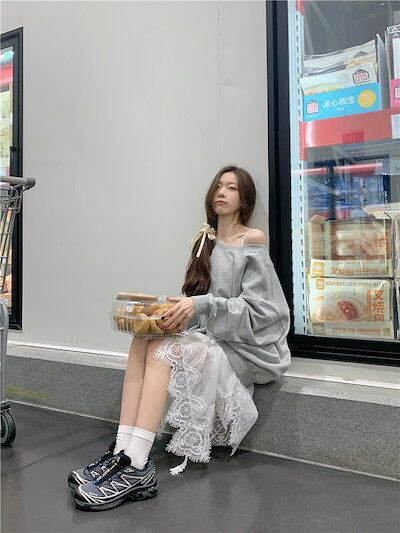 2024 秋冬 トップス 長袖 かわいいラウンドネック Tシャツ 肌見せ レディース 韓国風 ルーズ ゆったり 無地 カジュアル おしゃれサイズ シルエットファッション系コーデ衣装お出かけ4
