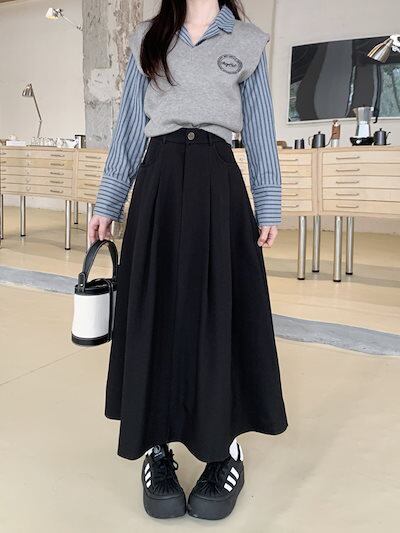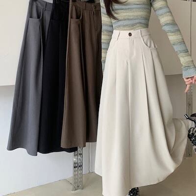 2024秋冬スカート ロング丈 Aライン ハイウエスト 美脚効果 脚長効果 細見え 秋 白 黒 おしゃれ かわいい 韓国ファッション レディース お出かけ