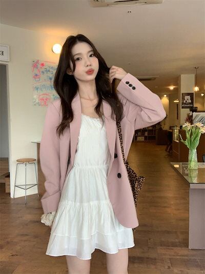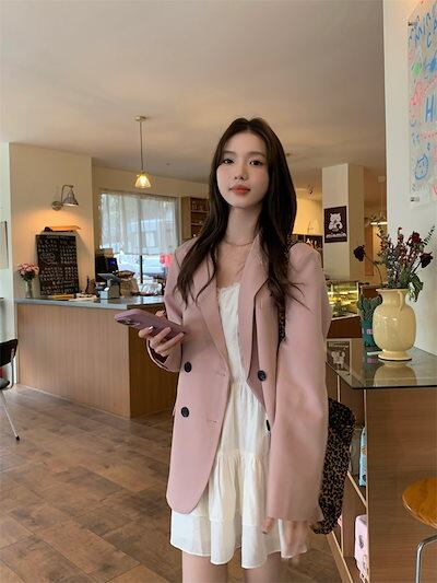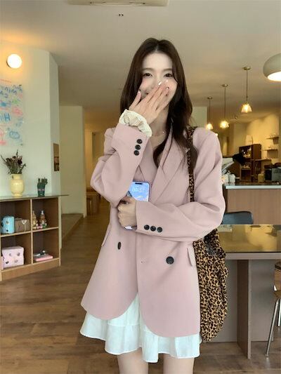 2024秋冬トップス ジャケット 長袖 ボタン テーラードカラー ゆったり 細見え 秋 ピンク おしゃれ かわいい ガーリー キュート 甘め 韓国ファッション レディース お出かけ