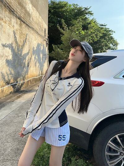 2024秋 長袖 Tシャツ ショート丈 カットソー トップス カジュアル 配色 韓国系ストリート ロゴ へそ出し タイトネックスリーブ 肌見せ T ファッションレディース かわいい風冬トップス