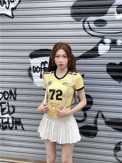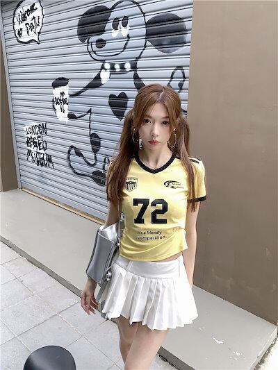 2024 春夏トップス 大人可愛い風半袖 Tシャツ 韓国 ラウンドネックロゴスリム かわいいへそ出しショート おしゃれスリーブカジュアルサイドコーデ丈 ファッション系レディースストリート T