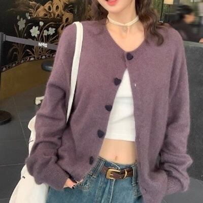 2024 夏秋トップス カーディガン ニット セーター ラウンドネック ボタン 長袖 ゆったり 細見え 秋 おしゃれ かわいい ガーリー キュート 甘め 韓国ファッション レディース お出かけ