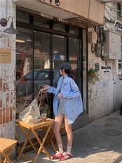 2024夏トップス シャツ 長袖 ボタン 襟 スタンダードカラー リボン 大きめサイズ 丈長め ゆったり 細見え 夏 水色 ライトブルー おしゃれ かわいい 韓国ファッション レディース お出かけ