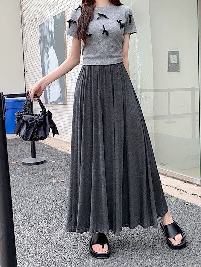 2024 春秋 スカート ロング丈 ハイウエスト 美脚効果 脚長効果 細見え 春 白 黒 韓国系ファッション レディース かわいい おしゃれ カジュアル お出かけ