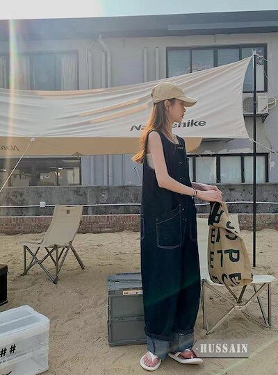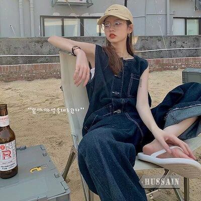 リラックス感ある雰囲気 ジャンプスーツ オーバーオール オールインワン サロペット ワイドパンツ ストレート ノースリーブ ゆるダボ ゆったり カジュアル 韓国系 フレンチ