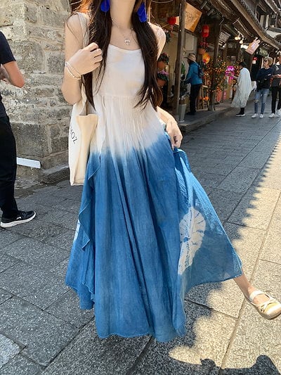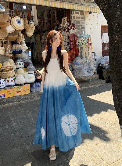 2024春夏タイダイ柄グラデーション キャミワンピース ノースリーブ ワンピース ロングワンピース 体型カバー レトロ 韓国ファッション レディース レトロ 大人可愛い