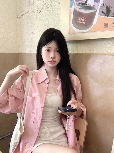 2024夏トップス シャツ リボン ボタン 長袖 丈長め ゆったり 細見え 夏 ピンク おしゃれ かわいい ガーリー キュート 甘め 韓国ファッション レディース お出かけ