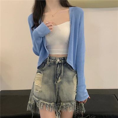 ライトニット カーディガン トップス 羽織り ショート 薄手 長袖 紫外線対策 UV対策 きれいめ オフィス OL カジュアル フレンチ