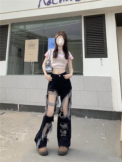 2024春秋デニムパンツ ボトムス ジーンズ ファッション系スタイル ゆるダボ ジーンズ シルエット加工 カジュアル 夏 メンズライク