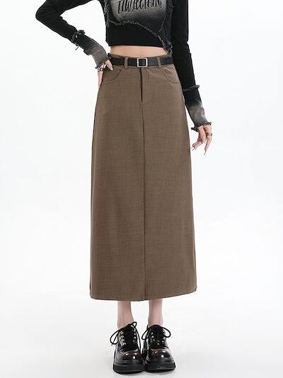 2024 春秋 スカート ロング丈 ポケット ハイウエスト 美脚効果 脚長効果 細見え 夏 おしゃれ ロング かわいい 韓国ファッション レディース お出かけ