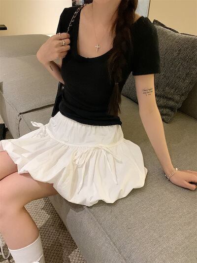 2024 夏秋 スカート かわいい ミニ丈 ハイウエストデザイン 脚長効果 美脚効果 細見えボトムス裏地付き 透け防止 夏 黒 カジュアル おしゃれ 甘め フレンチ 韓国系ファッション