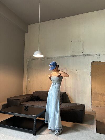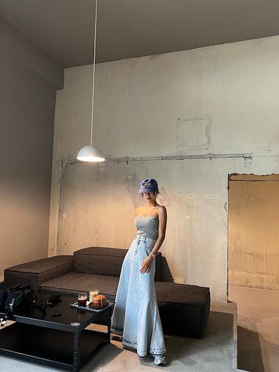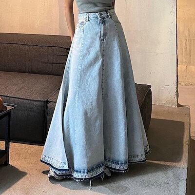 2024 春夏スカート ロング丈 Aライン デニム フレア ハイウエスト 美脚効果 脚長効果 細見え 夏 水色 おしゃれ かわいい 韓国ファッション レディース お出かけ
