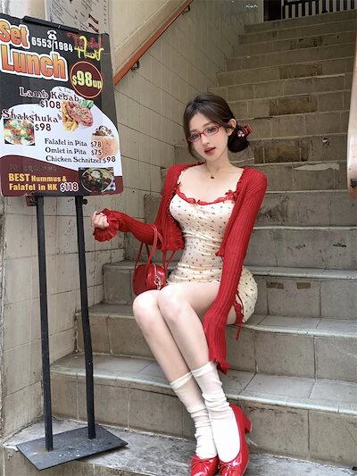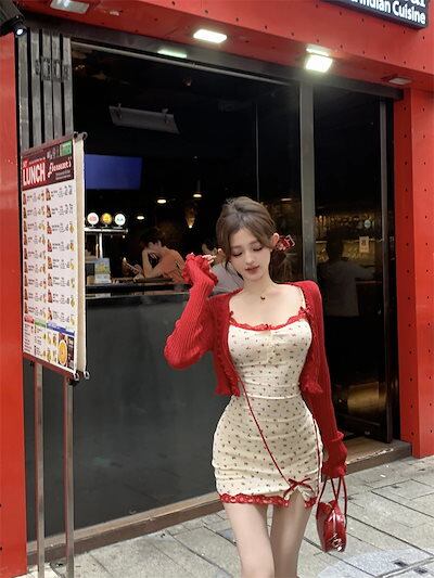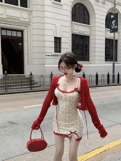 2024夏 韓国 ワンピース ロング丈 ゆったり キャミソール ハイウエスト 小花 フィッシュテールかわいい カジュアル おしゃれ 夏 ファッション フィッシュテールフレンチお出かけ