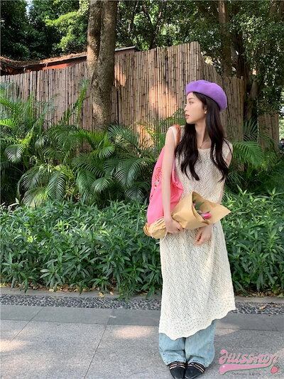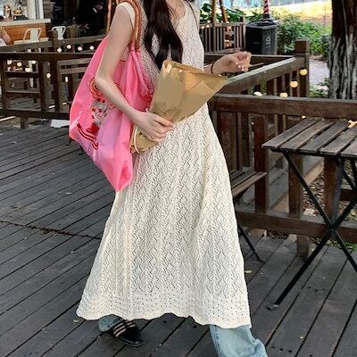 ワンピース ミモレ丈 ジャンパースカート ジャンスカ ノースリーブ Aライン レース 透かし彫り スリット バックオープン 白 ホワイト 春 韓国ファッション レディース おしゃれ かわいい カジュア