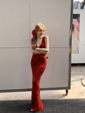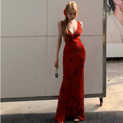2024春夏 ワンピース ロング丈 ゆったり Vネック キャミソール ハイウエスト かわいい カジュアル おしゃれ 夏 ファッション フィッシュテールフレンチお出かけ