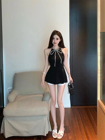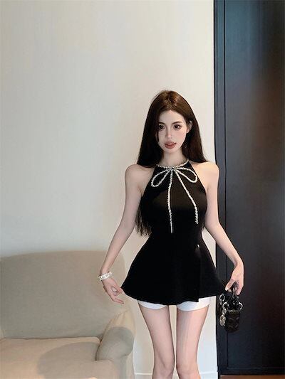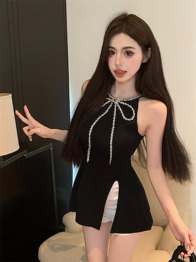 2024夏 韓国ワンピース ミニ丈 キャミソール ネック柄 ゆったり 夏 カラフル 韓国ファッション レディース おしゃれ かわいい ガーリー キュート 甘め カジュアル お出かけ
