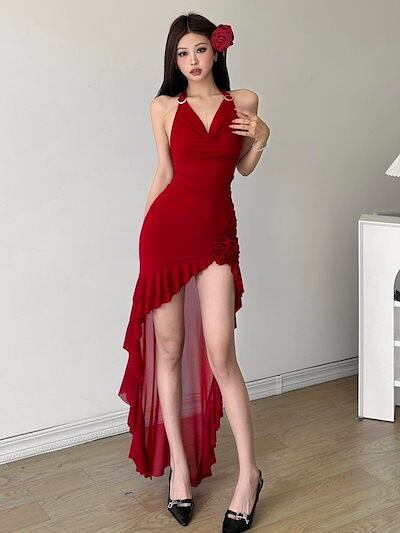 2024春夏 ワンピース かわいい ミモレ丈 ジャンパースカート キャミソール フロントオープン 春 韓国ファッション レディース おしゃれ かわいい