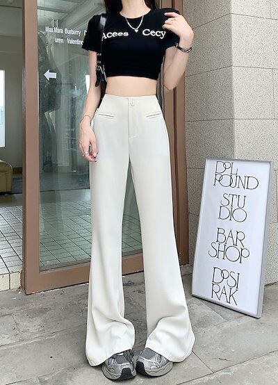 2024 夏 韓国パンツ ロング丈 ポケット ワイドレッグ ハイウエスト 美脚効果 脚長効果 細見え 夏 白 黒 きれいめ おしゃれ かわいい 韓国ファッション レディース お出かけ