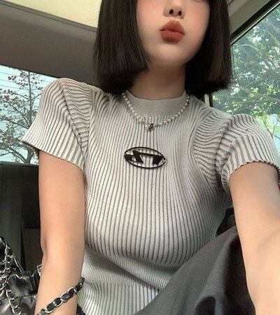 2024 夏 韓国 甘い トップス Tシャツ クルーネック丈 休日 フレンチ 韓国 ブラウス ファッション タイト スリムフィット丈短め ショート レディース 休日 おしゃれ T