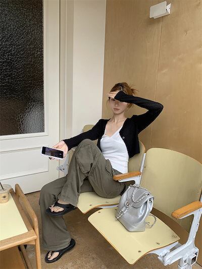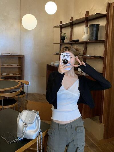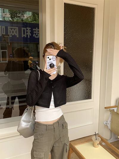 2024 夏 韓国 ライトニット カーディガン トップス 羽織り加工 ショート丈 薄手 長袖 紫外線対策 UV対策 きれいめ オフィス OLネックカジュアルフレンチフェミニンファッション韓国レディース