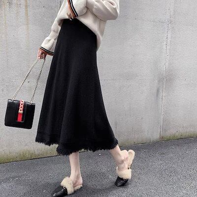 脚魅せミニスカート マーメイドスカート 夕イトスカ一ト2022新作 ハイウエストセミロング 厚手 ニット ゆったり 毛糸 おしゃれ スカート