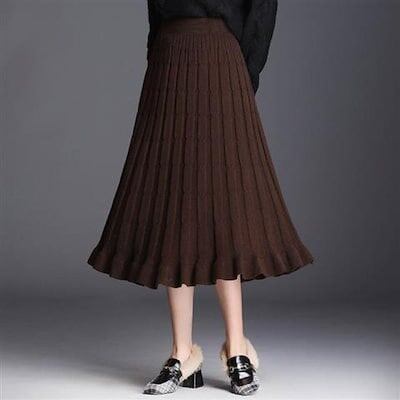 マキシスカート 脚魅せミニスカート マーメイドスカート 夕イトスカ一トニット プリーツスカート セミロング丈 女 スカート 2022新作 厚手 ハイウエスト Aライン 毛糸スカート