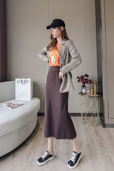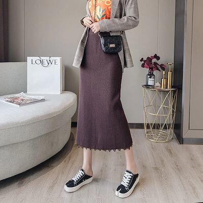 マキシスカート 脚魅せミニスカート マーメイドスカート 夕イトスカ一トスカート レディース スリット入り ニットスカート