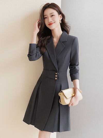 ワンピース スーツワンピース 高品貭 プリーツ スリミング 韓国 ワンピース ドレス パーティードレス ロングワンピース 卒業式 ママ スーツ 入学式 ママ スーツ タイトワンピース