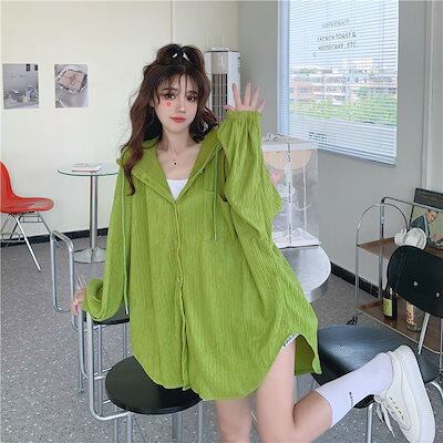 2024新作夏 大きいサイズ uvカットパーカー ゆったり怠惰な風 冷房対策 アウター 韓国ファッション uv紫外線対策長袖トップス 百掛け 体型カバー ブラウス/シャツ レディース