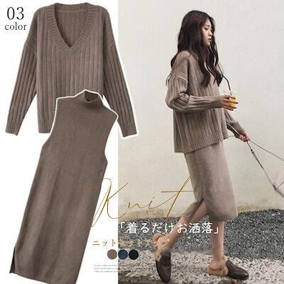 セットアップ 韓国風 ニット セットアップ レディース