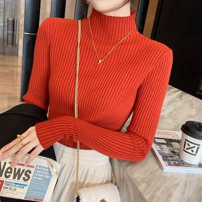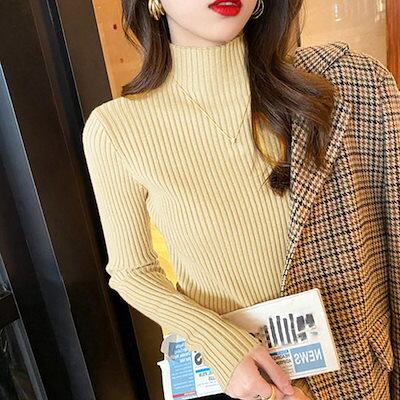 ベーシックニット ボトルネックリブニットトップスレディース人气 新作