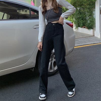 ワイドパンツ 黒とグレー ジーンズ レディース 秋 2024 新しいスタイル ワイドパンツ ゆったり ストレートパンツ