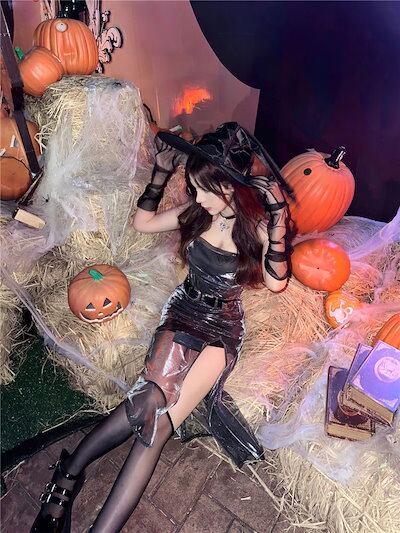 ハロウィンコスプレ ブラック スリミング パッチワーク メッシュ ハロウィン サスペンダー ドレス ベルト