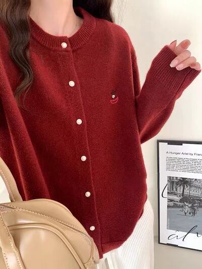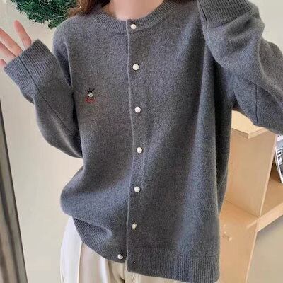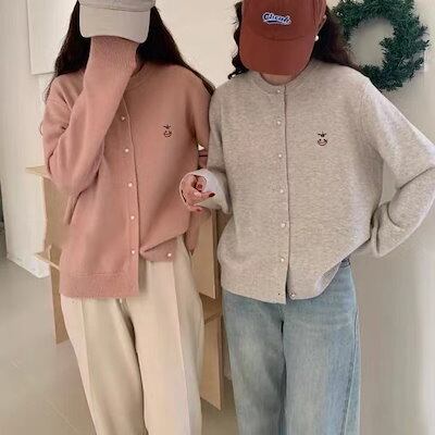 ニットカーディガン 刺繍 ラウンドネック ジャンパー カーディガン レディース 2024 ソフト ニット ジャケット