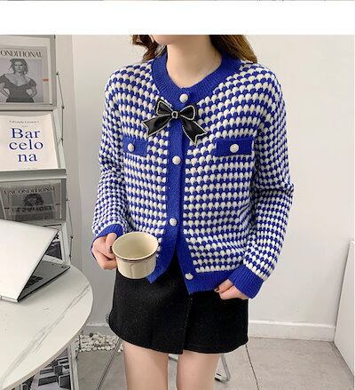 ニットカーディガン 新しいスタイル ラウンドネック 蝶ネクタイ ニット カーディガン 薄手 ジャンパー ジャケット