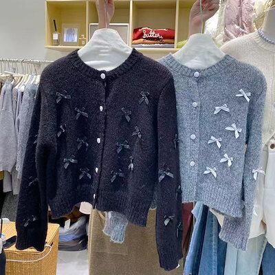 ニットカーディガン ジャンパー コート レディース 秋冬 新しいスタイル 蝶ネクタイ ロングスリーブ ニットカーディガン