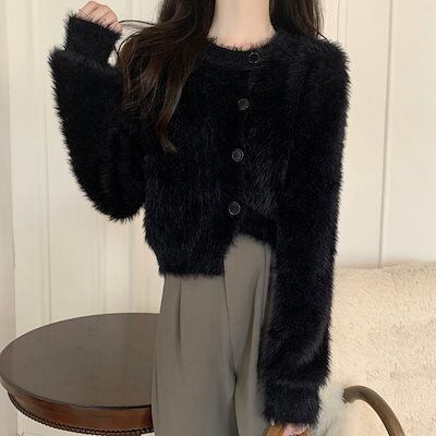ニットカーディガン イミテーションミンクファー ショート ニット カーディガン コート レディース 秋冬 ニット トップス