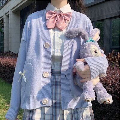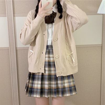 カーディガン 秋と冬 JK 制服 カレッジスタイル ニット コート Vネック カーディガン ジャンパー