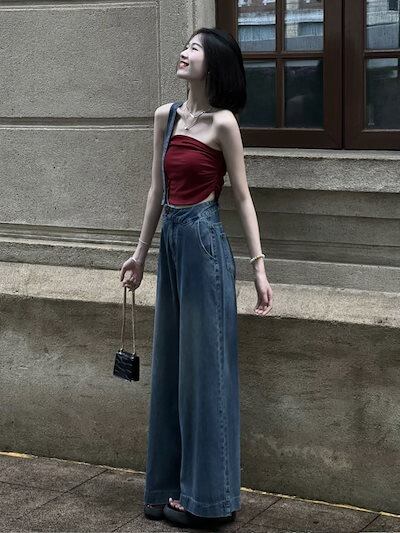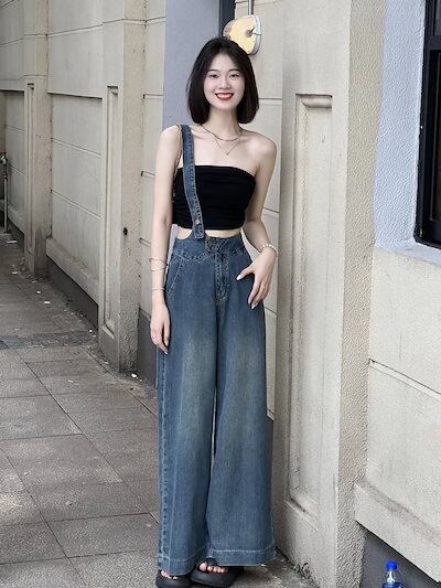 コーデ完成!サロペット 古代のデニムバックパックズボン女性2024薄くて汎用性の新しい韓国語バージョン 韓国ファッション