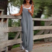 コーデ完成!サロペット 2024新作カジュアルパンツ女性ゆったり綿麻シンプルワイドレッグバックパンツ 韓国ファッション