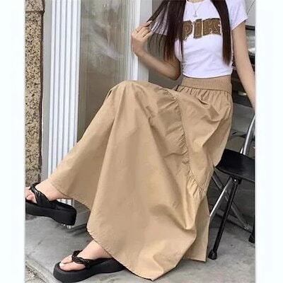 人气新作ロングスカート プリーツスカートOL 通勤 痩せ見え半身スカート夏の新ファッションプリーツジョイントでウエストをほぐす マキシスカート レディース