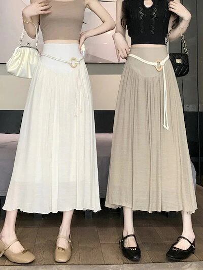 人气新作ロングスカート プリーツスカートOL 通勤 綿麻 夏 薄手 ミディアムスカートプリーツベルト 大振りスカート マキシスカート レディース