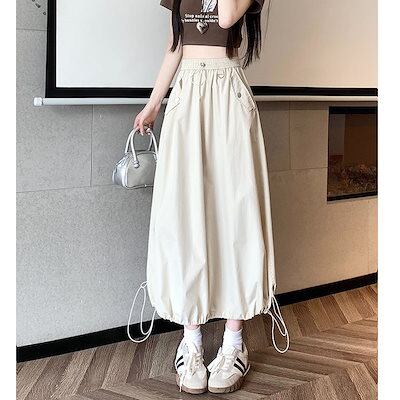 【3日以内出荷】人气新作ロングスカート プリーツスカートOL 通勤 オーバーサイズ ワークウェアハーフスカート 垂れ感ドローロープロング 夏 マキシスカート レディース